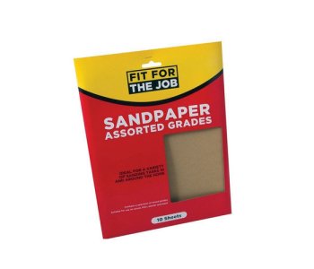 Fit For The Job FFJASP10A Sandpaper Assorted Grades Pack of 10Flint /glass abrasive paper. 230mm x 280mm sheets, suitable for general purpose hand sanding and paint preparation.Assorted grades.