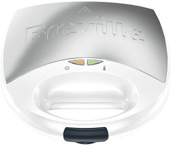 Enjoy delicious homemade toasties with this Breville 2 Slice Sandwich Toaster. In a contemporary gloss white and stainless steel finish, this toastie maker has easy-clean non-stick plates and features the Breville Cut & Seal system to produce the perfect toastie triangle. Illuminated indicators show when your sandwich toaster is ready to use, while the handle lock and cord wrap facility allow for compact, upright storage.