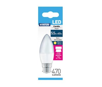 Candle LED 5.5W 470 Lumen Pearl Bayonet Cap W. White Boxed