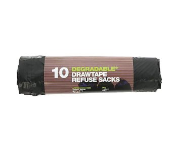 100% Degradable Drawtape Black Refuse SacksPack of 10Approx Sizes :74cm x 86cm (29"x34")Rim : 148cm (58")70L capacity