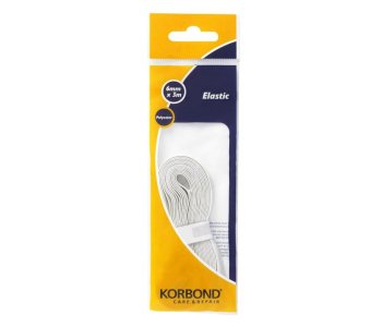 Korbond Elastic is ideal for a multitude of applications and can be utilised for repair work, sewing and craft projects.Width : 6mmLength : 3mColour : White