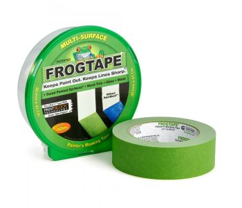 FrogTape Multi-Surface is a medium adhesion painters tape designed for use on cured painted walls, wooden trim, glass and metal. After application it will remove cleanly from most surfaces for up to 21 days (or 7 days in direct sunlight).