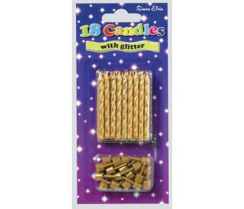 Gold Glitter Spiral 18 Cake Candles & Holders