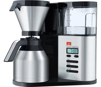 The Melitta© AromaElegance© Therm DeLuxe, with its innovative features and ease of use, gives you the highest standards in filter coffee enjoyment. Thanks to the practical timer feature you can wake up to the smell of fresh coffee.