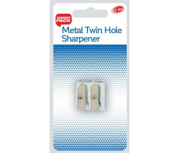 Traditional wedged shape metal sharpener with 2 different sized holes to suit a variety of pencil sizes.