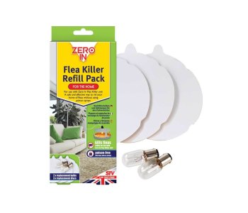 Safe and effective, this flea killer refill pack includes: 2 x replacement bulbs2 x replacement discsOffering poison-free flea control, simply change the discs every 2-4 weeks.